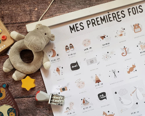 Les Petites Dates designs posters with passion, from the beautiful region of Brittany, France. Their posters are sold with a stamp and ink to mark all the beautiful moments of children's lives, from 0 to 10 years old. First steps, first trip, first ice cream, first full night of sleep, the encounter with an ant, a jellyfish, a seagull. Every small milestones in the life of a child to remember can now be kept forever. A nice gift to offer or to treat yourself for a birth or a birthday.